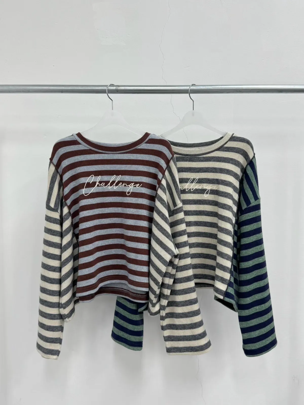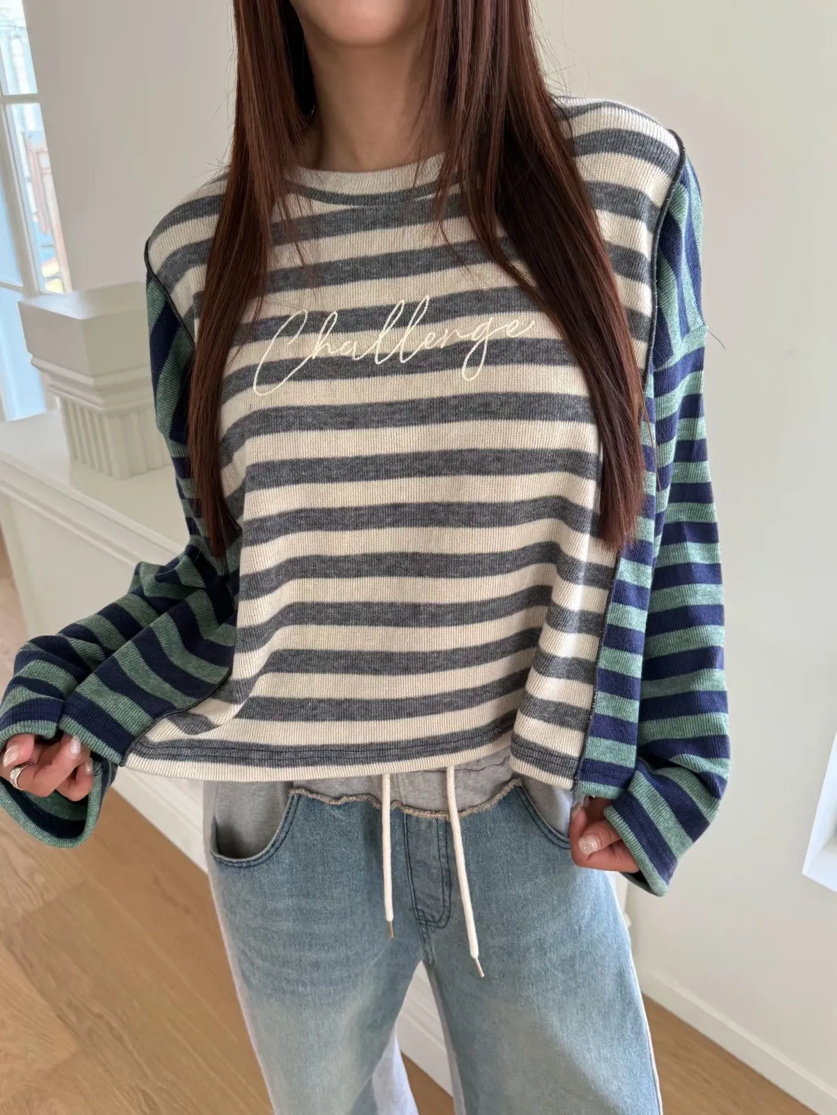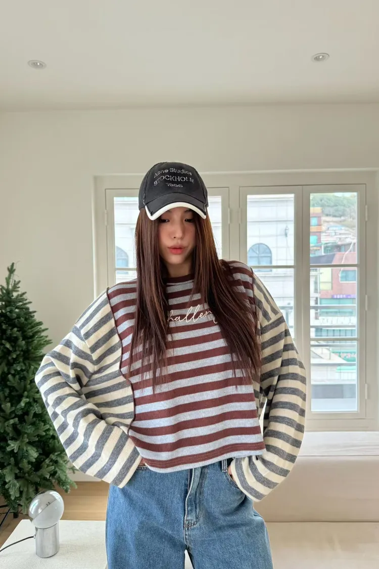 拼接條紋針織上衣