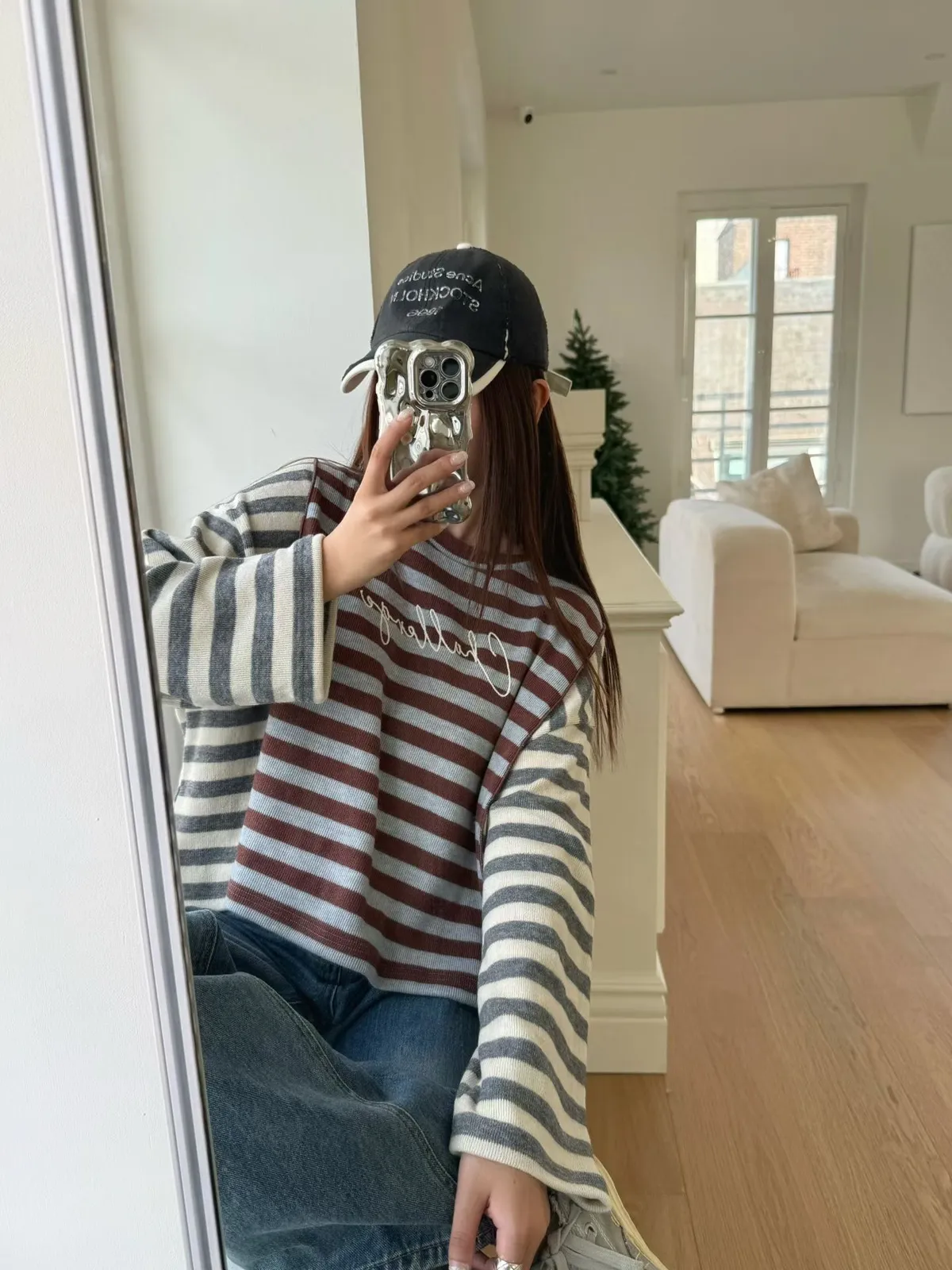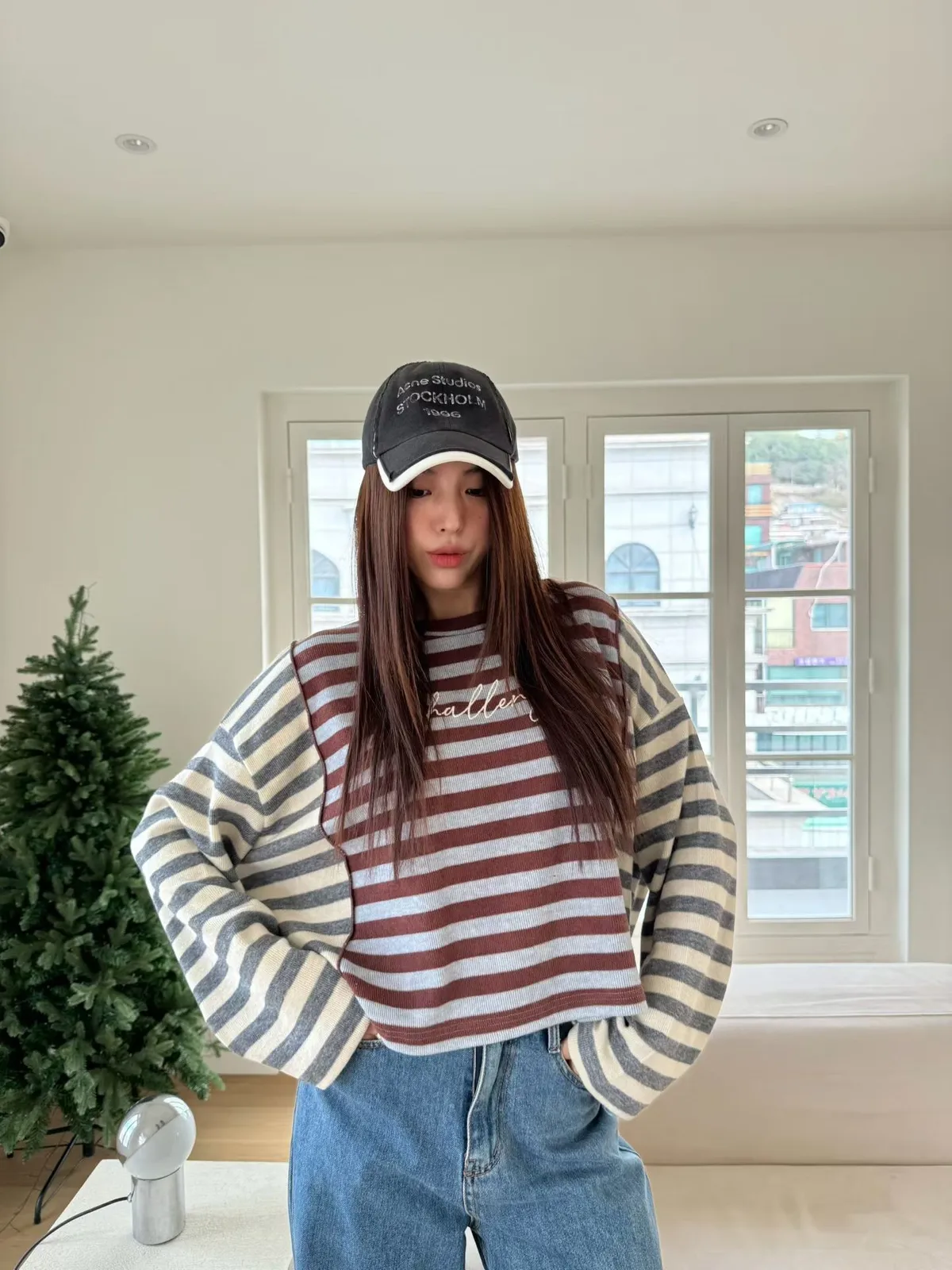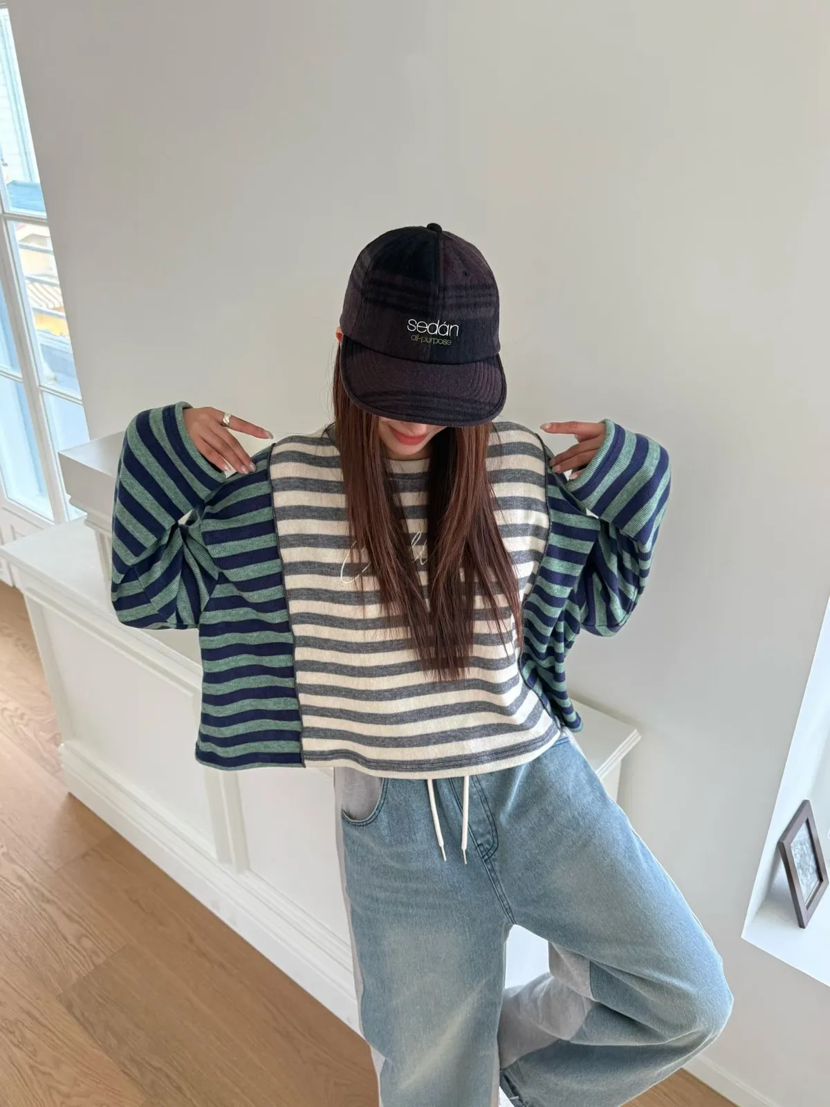 拼接條紋針織上衣
