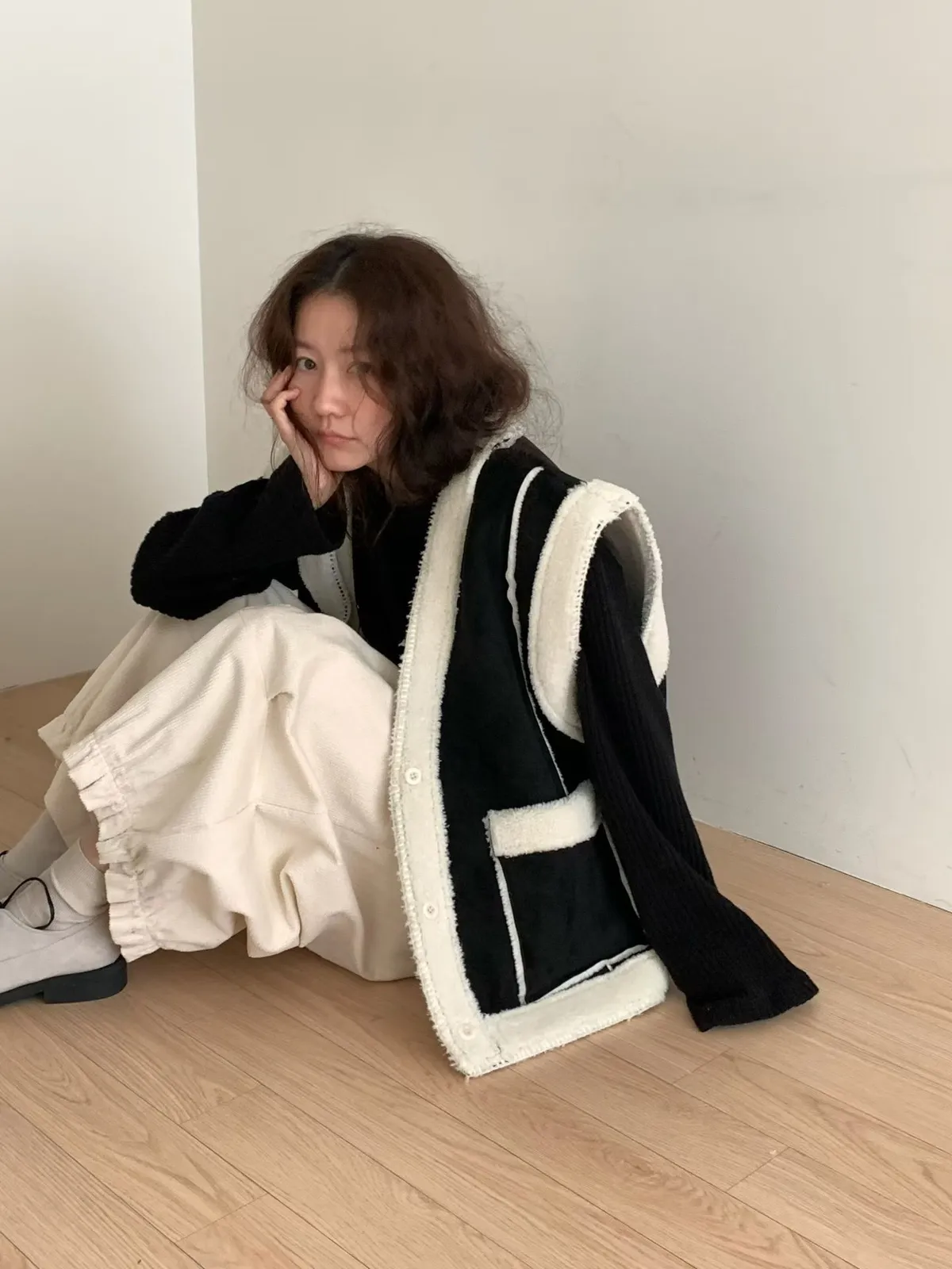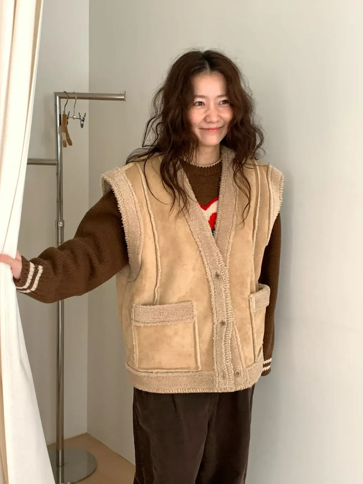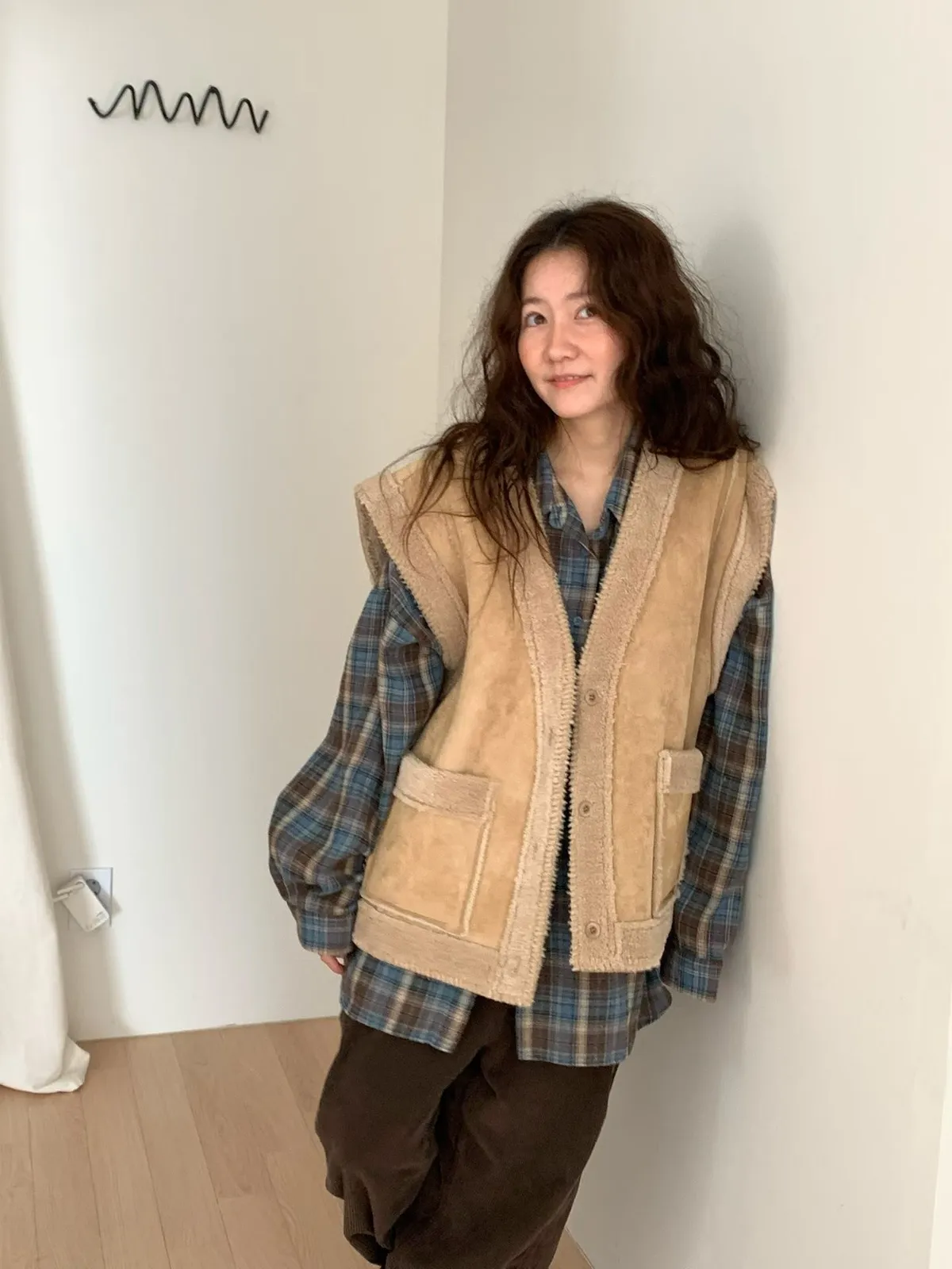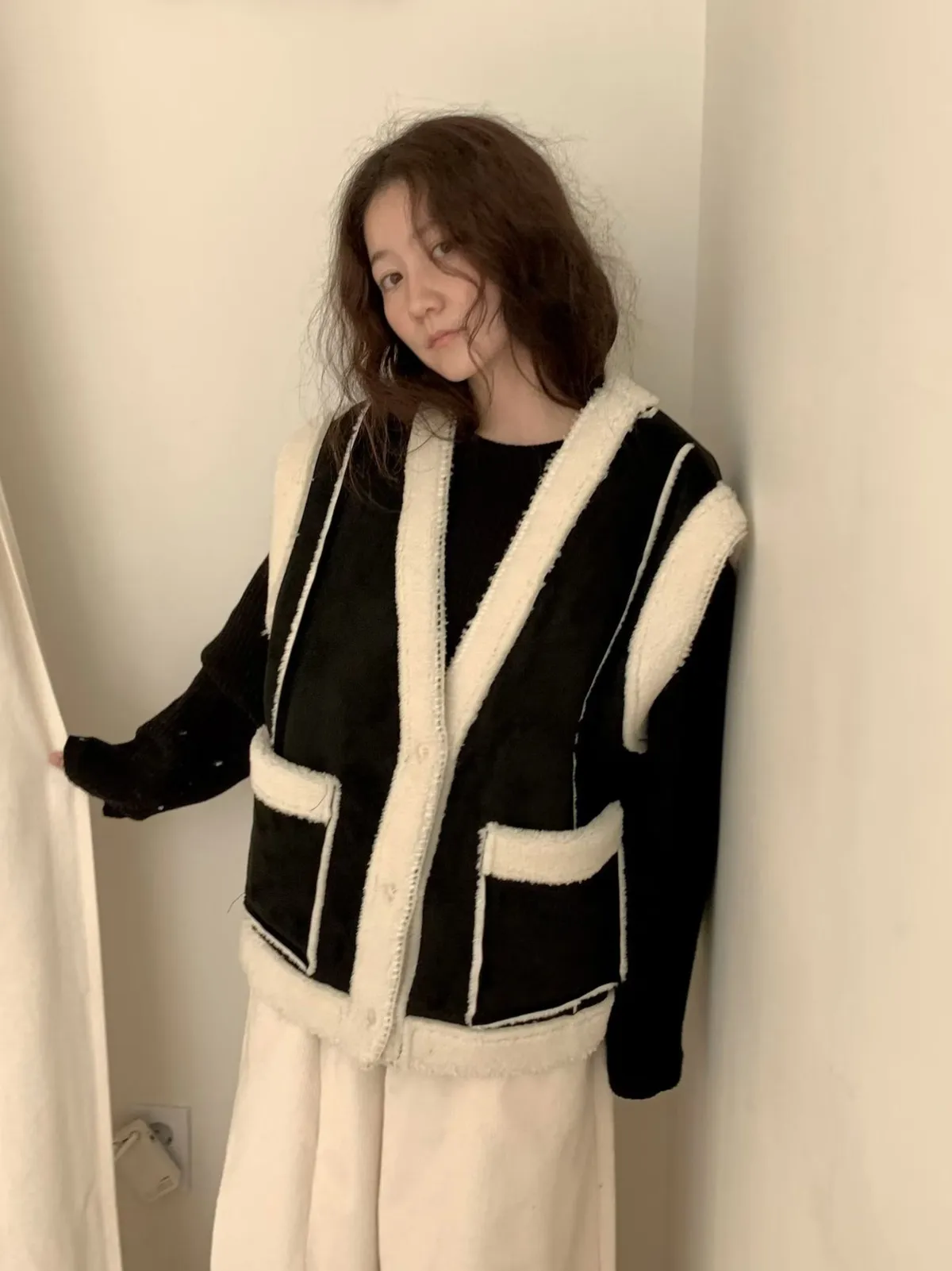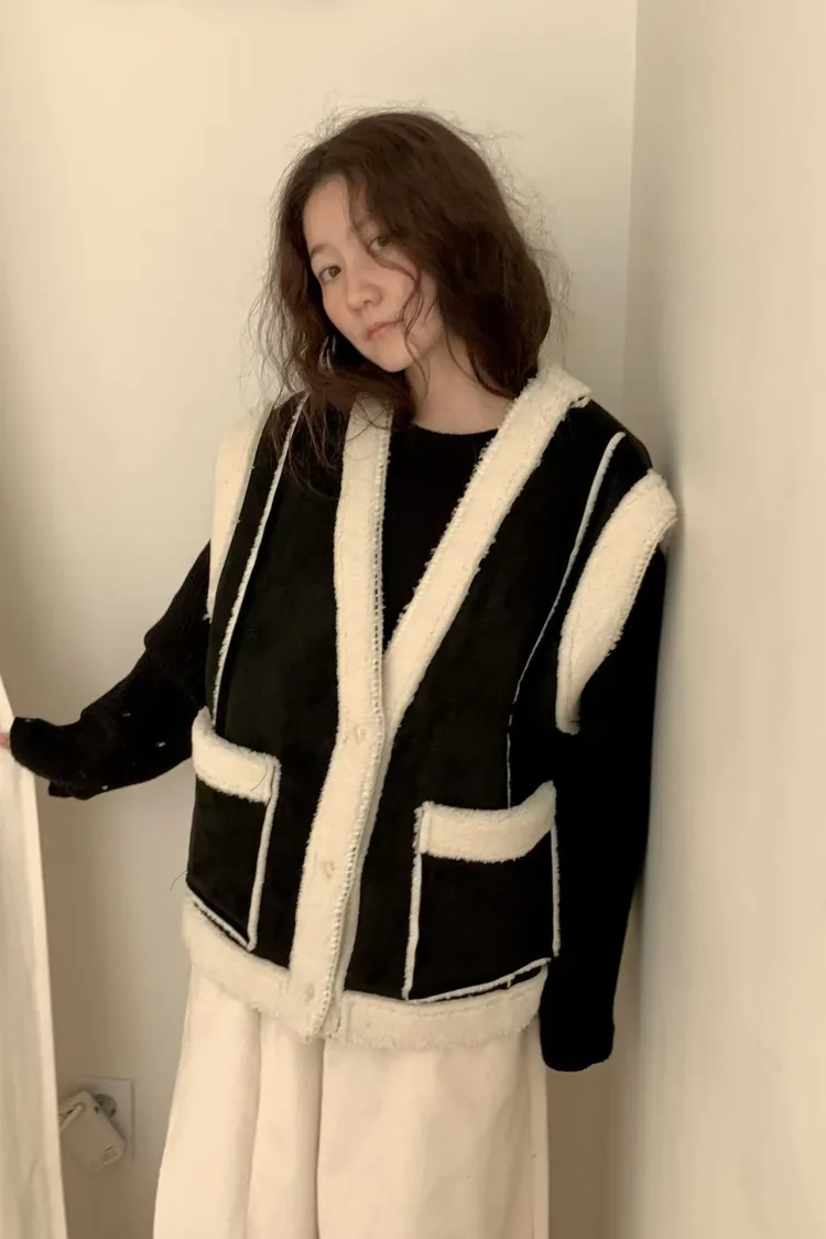 羊羔毛麂皮背心外套