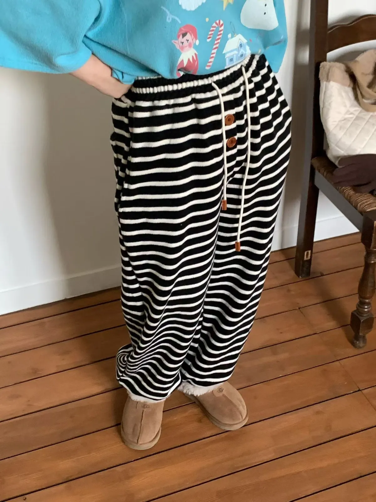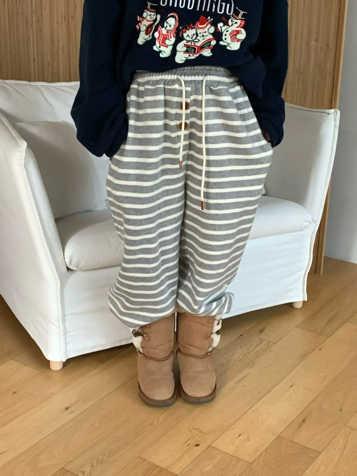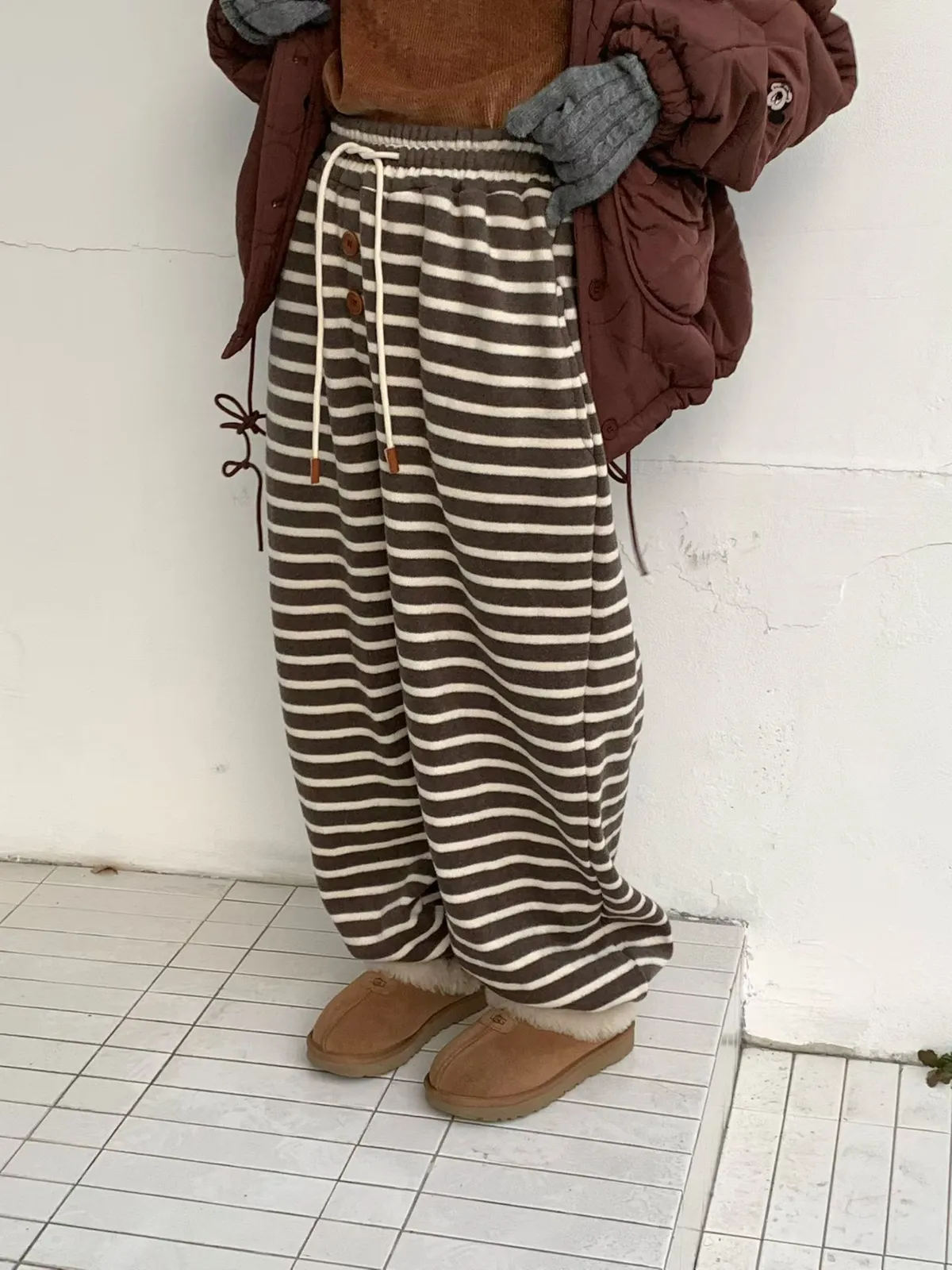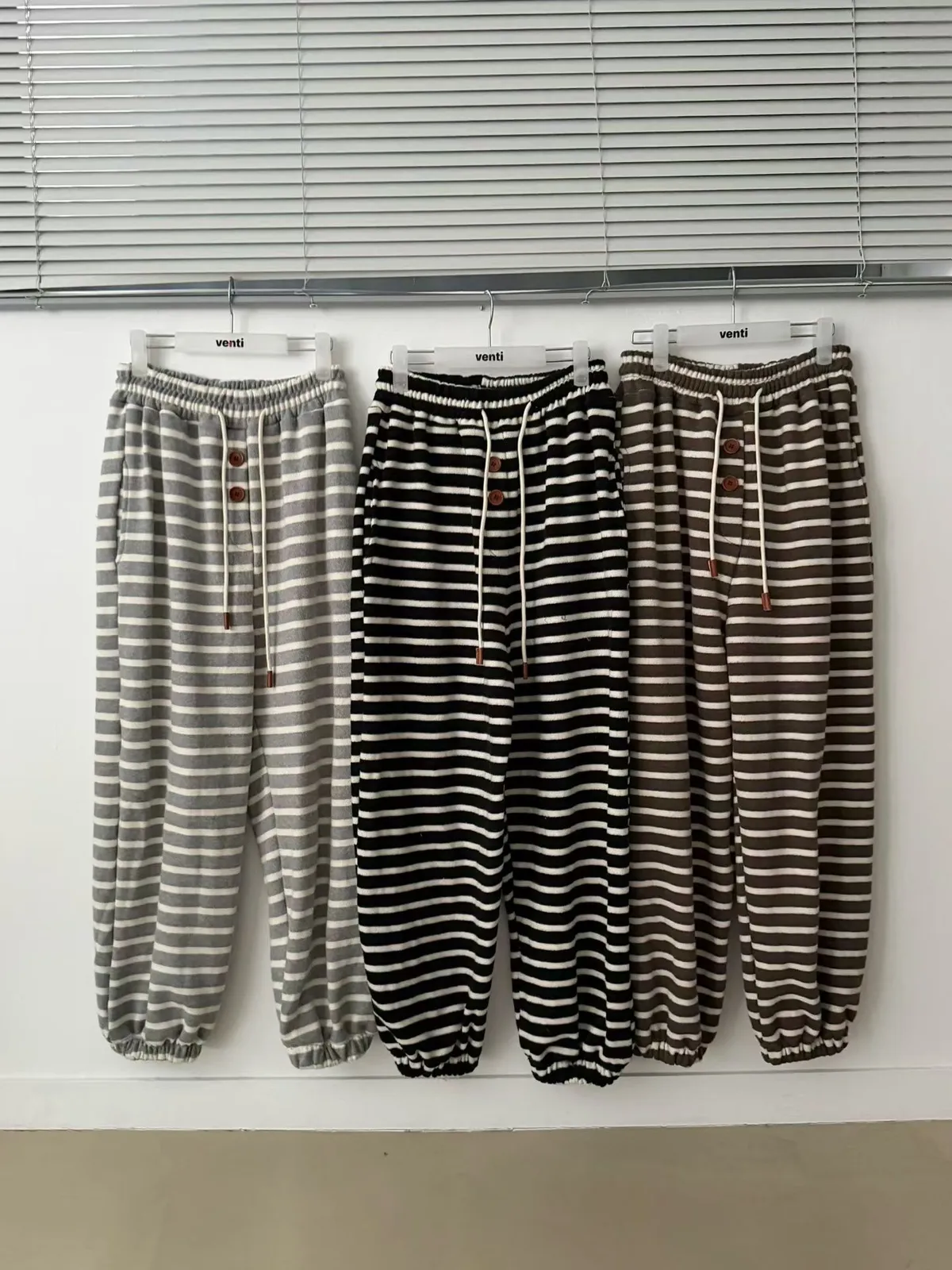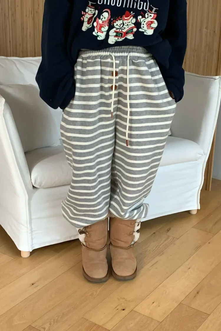 鬆緊條紋釦子褲