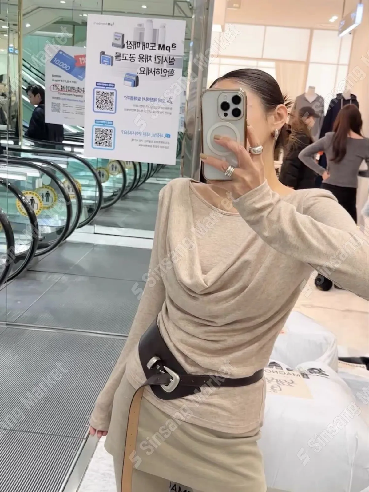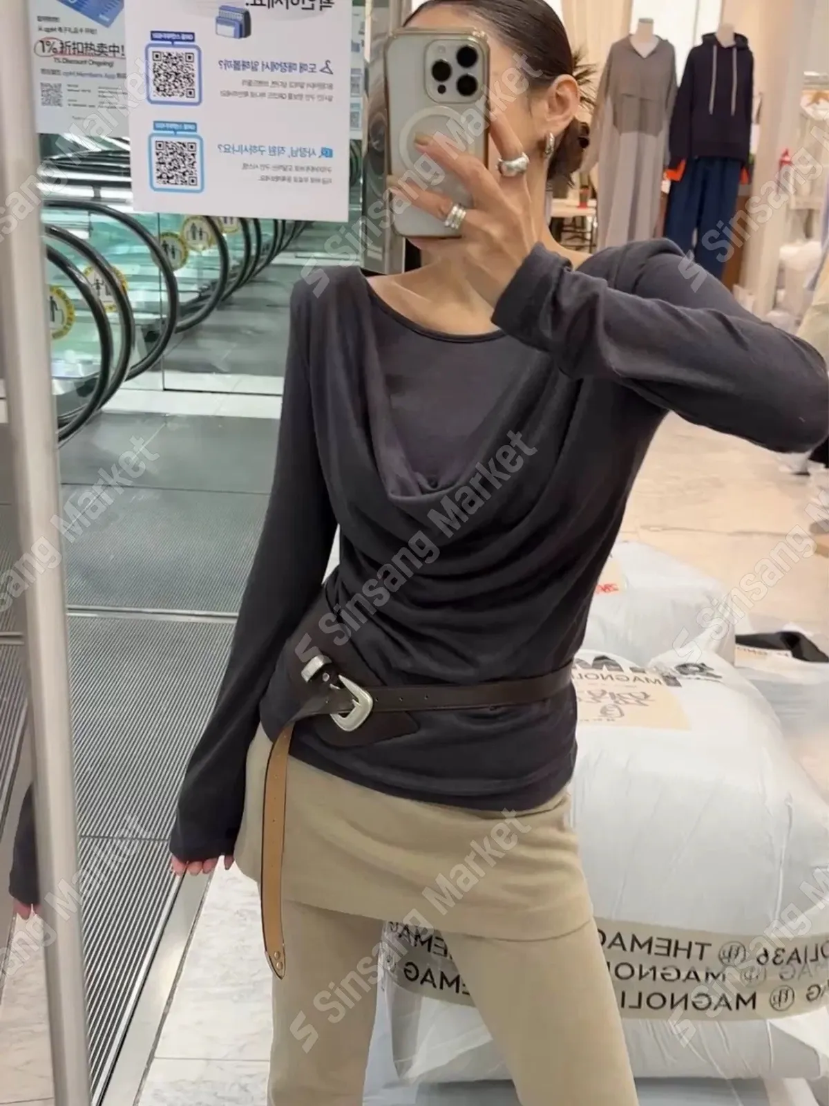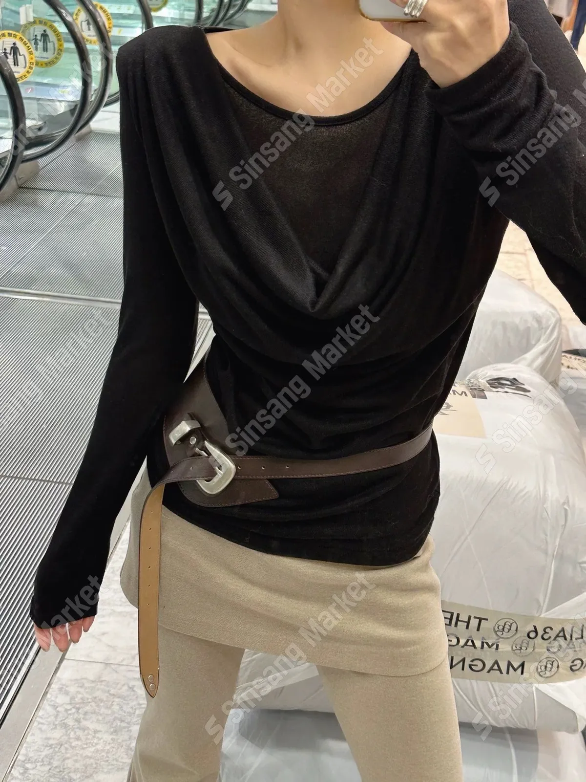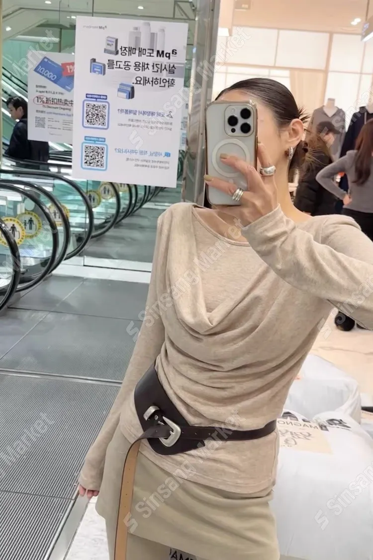 墊肩垂墜抓皺上衣