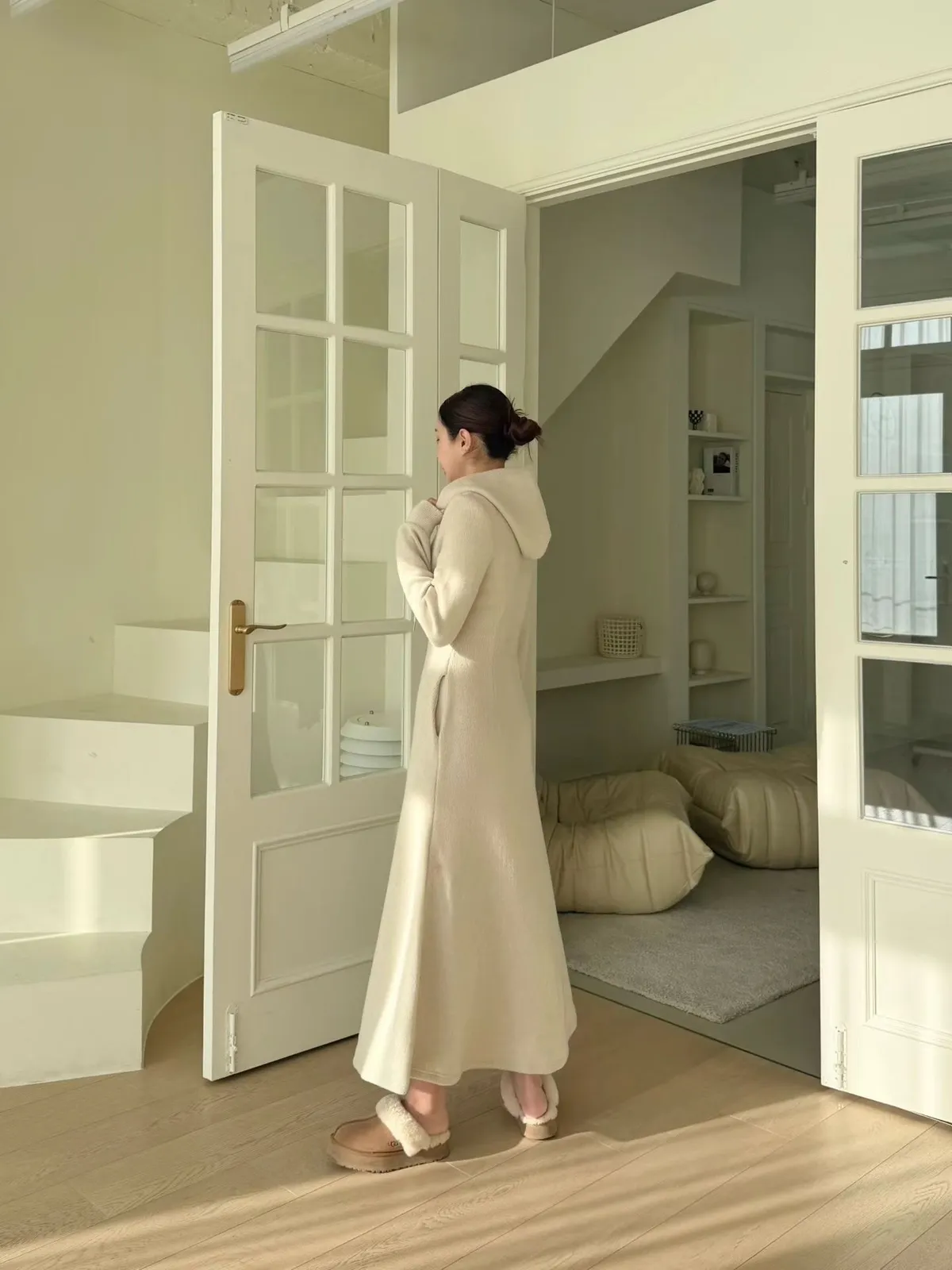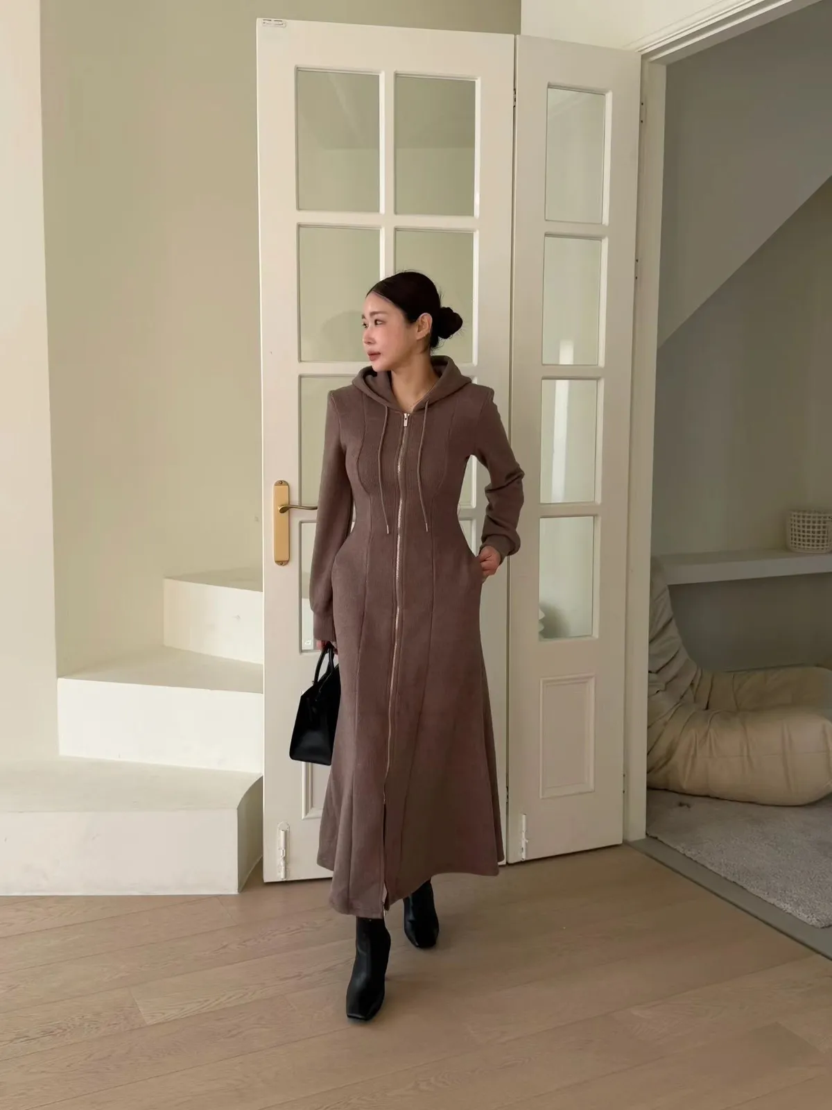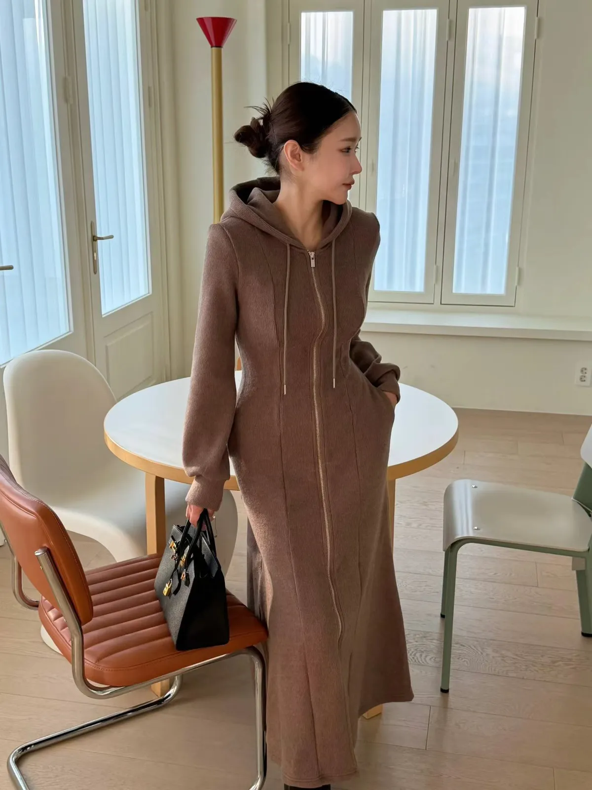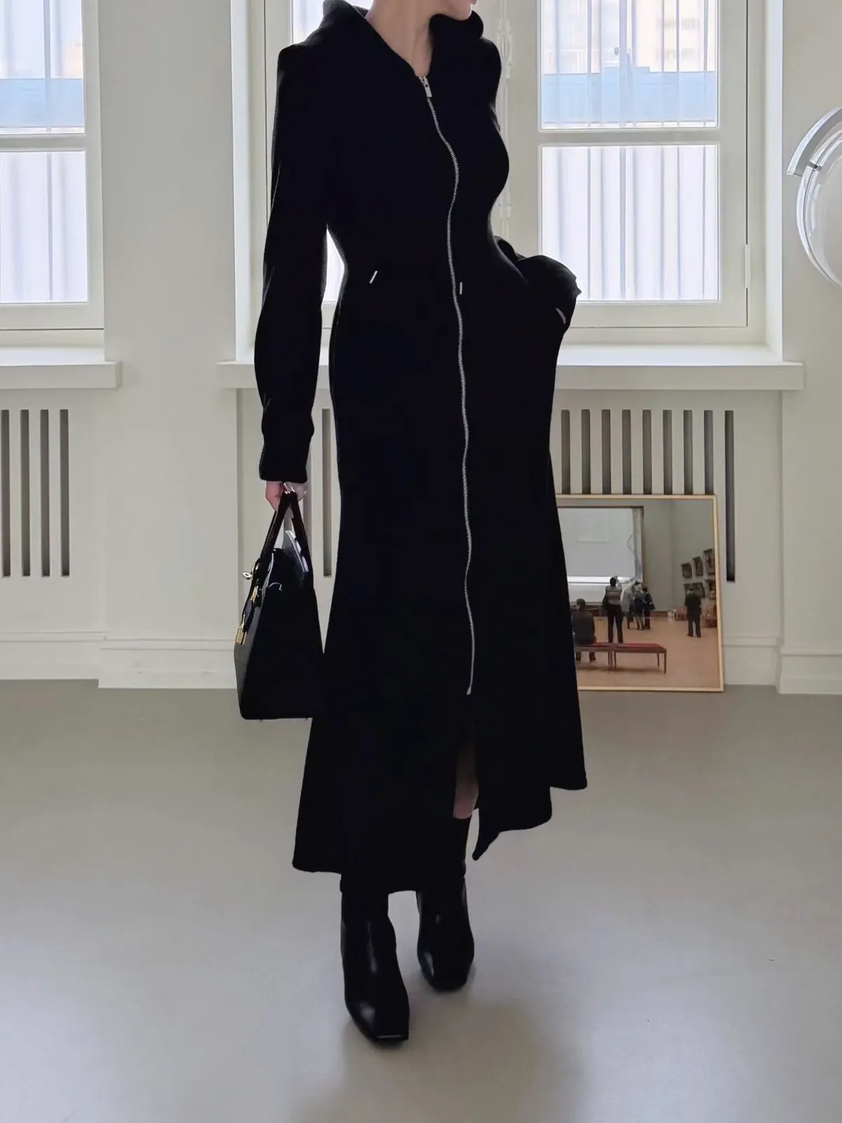 羊毛拉鍊連帽魚尾長洋裝