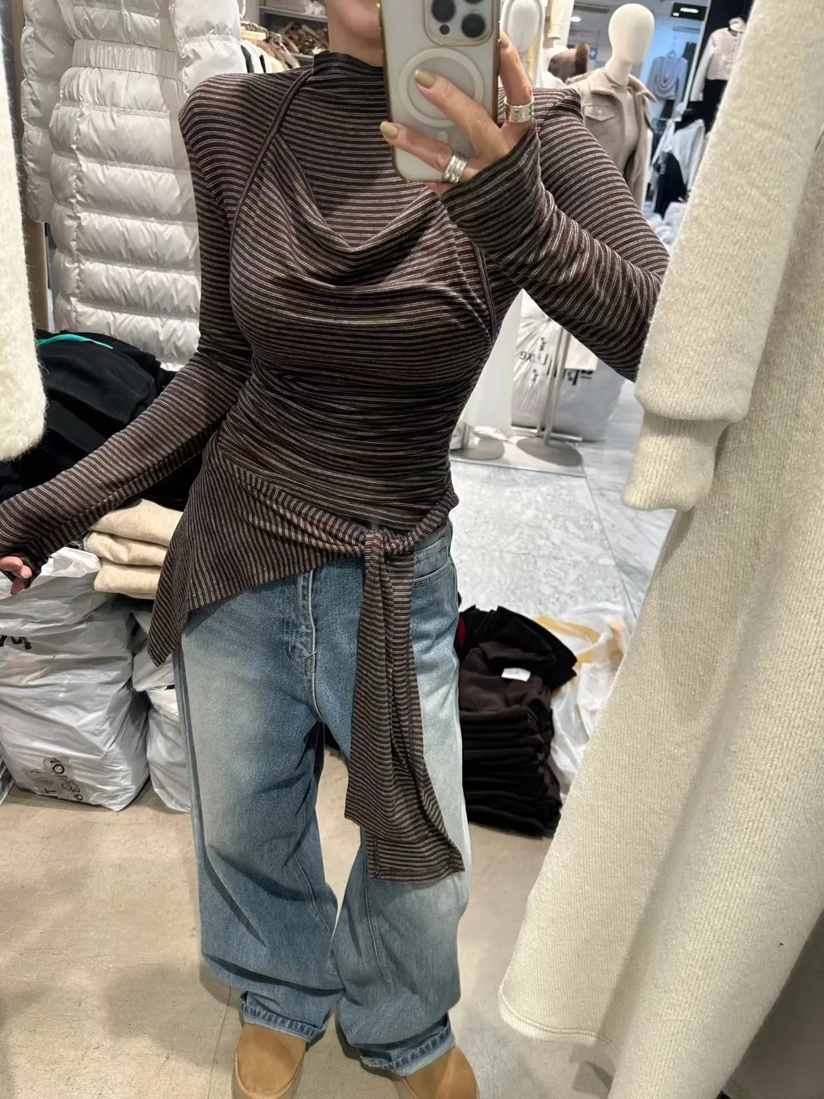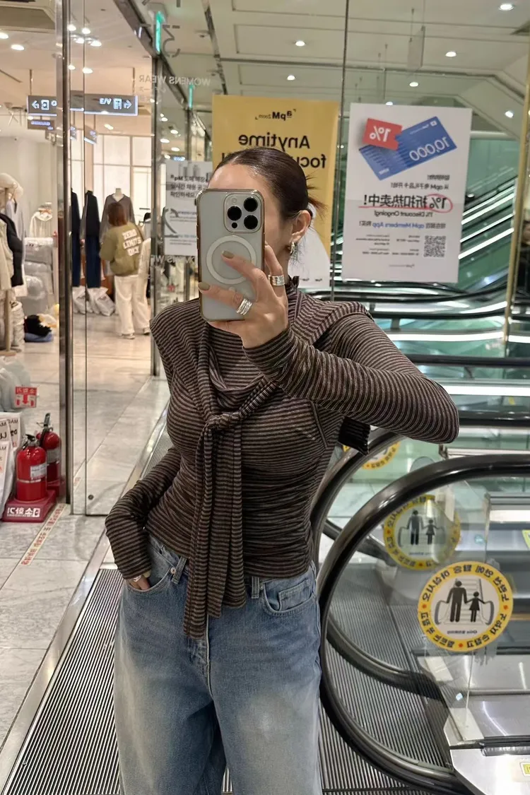假兩件條紋羊毛披肩上衣