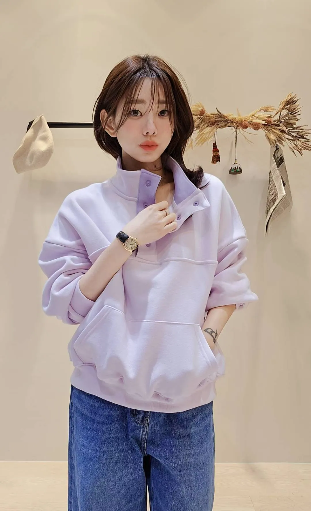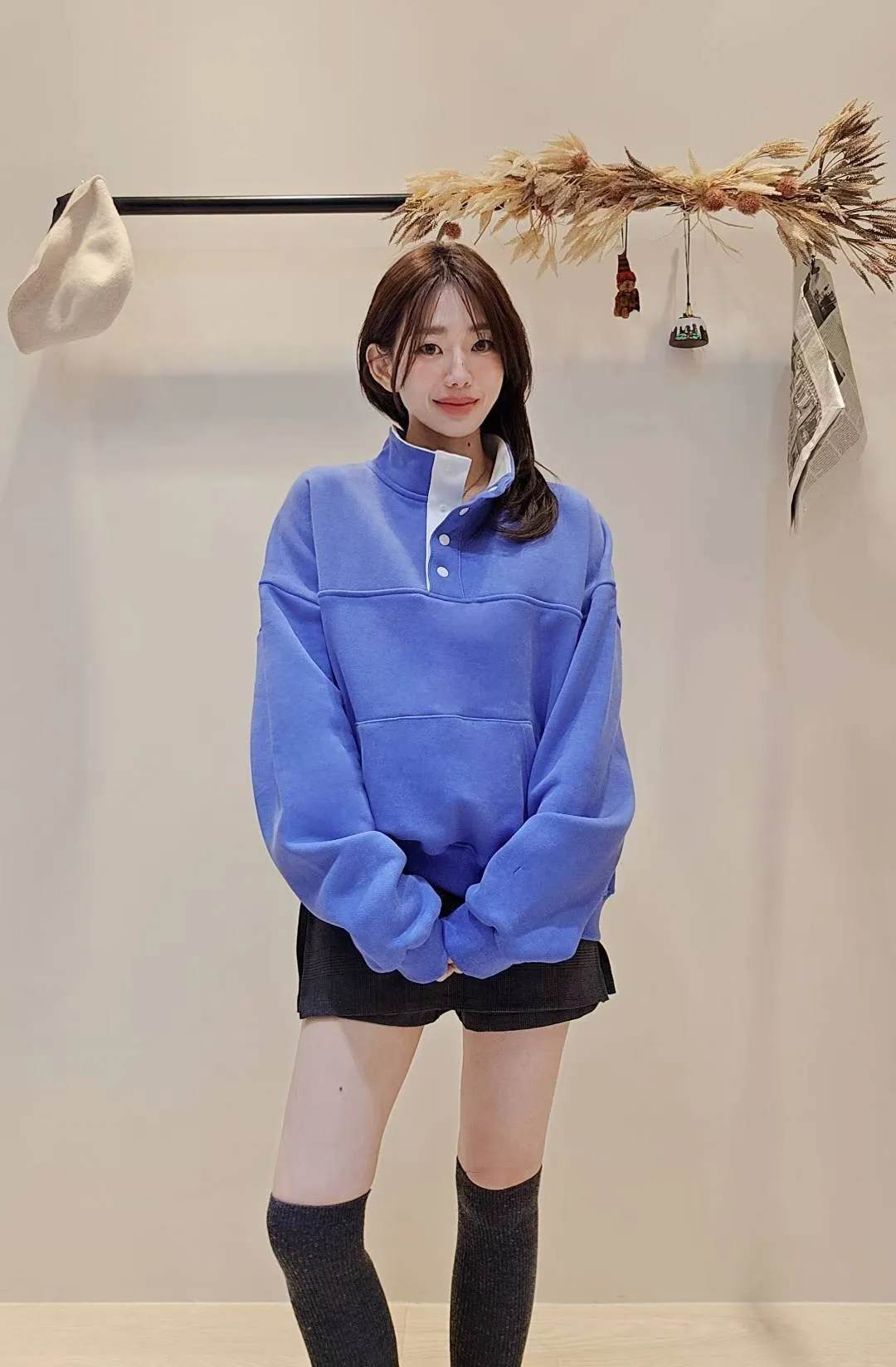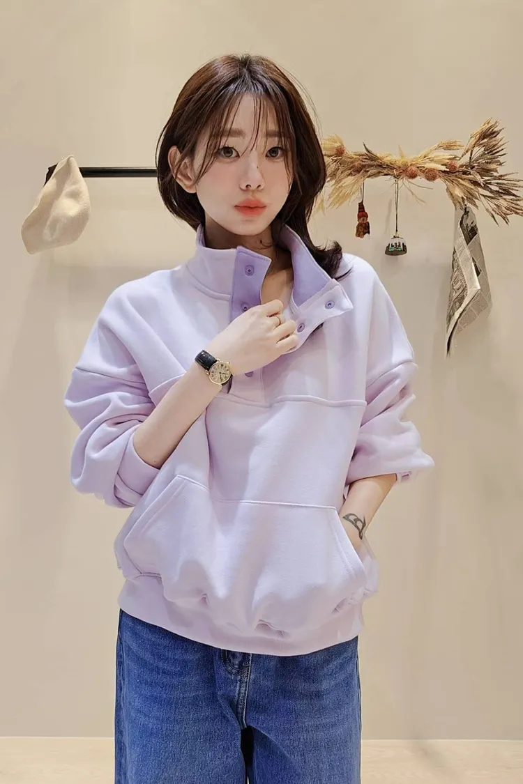 質感配色領內刷毛大學衛衣