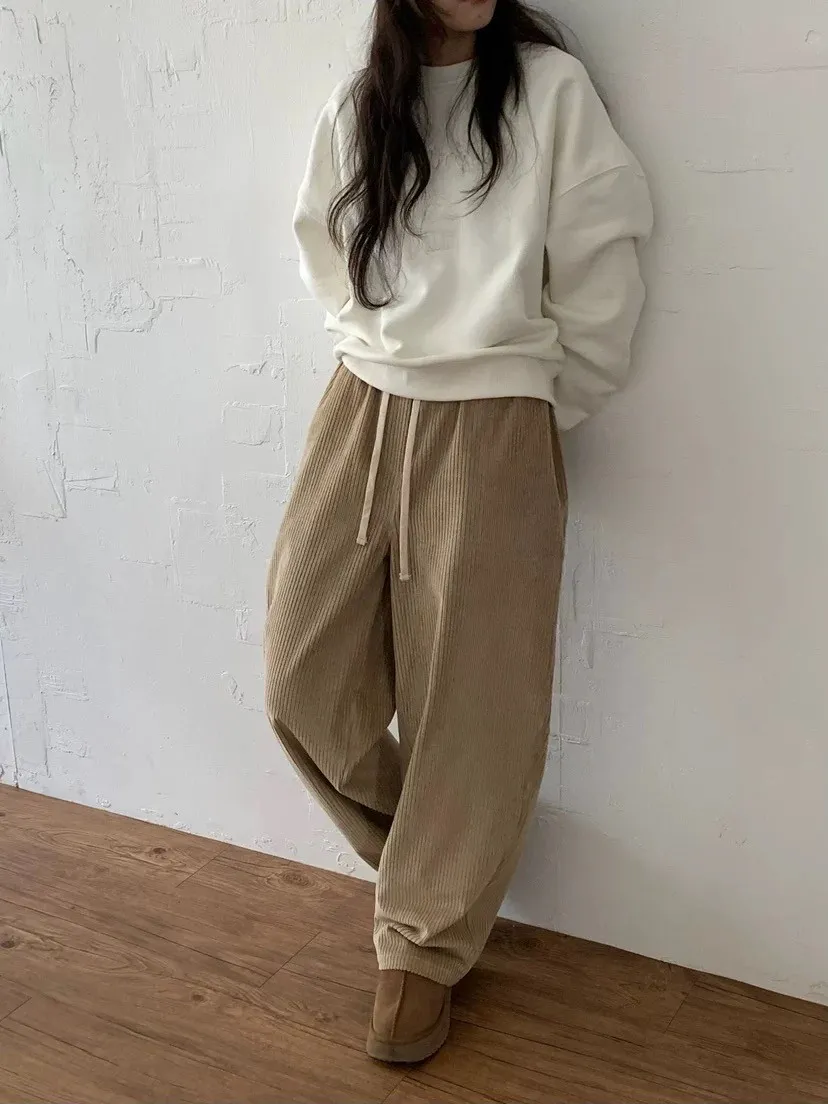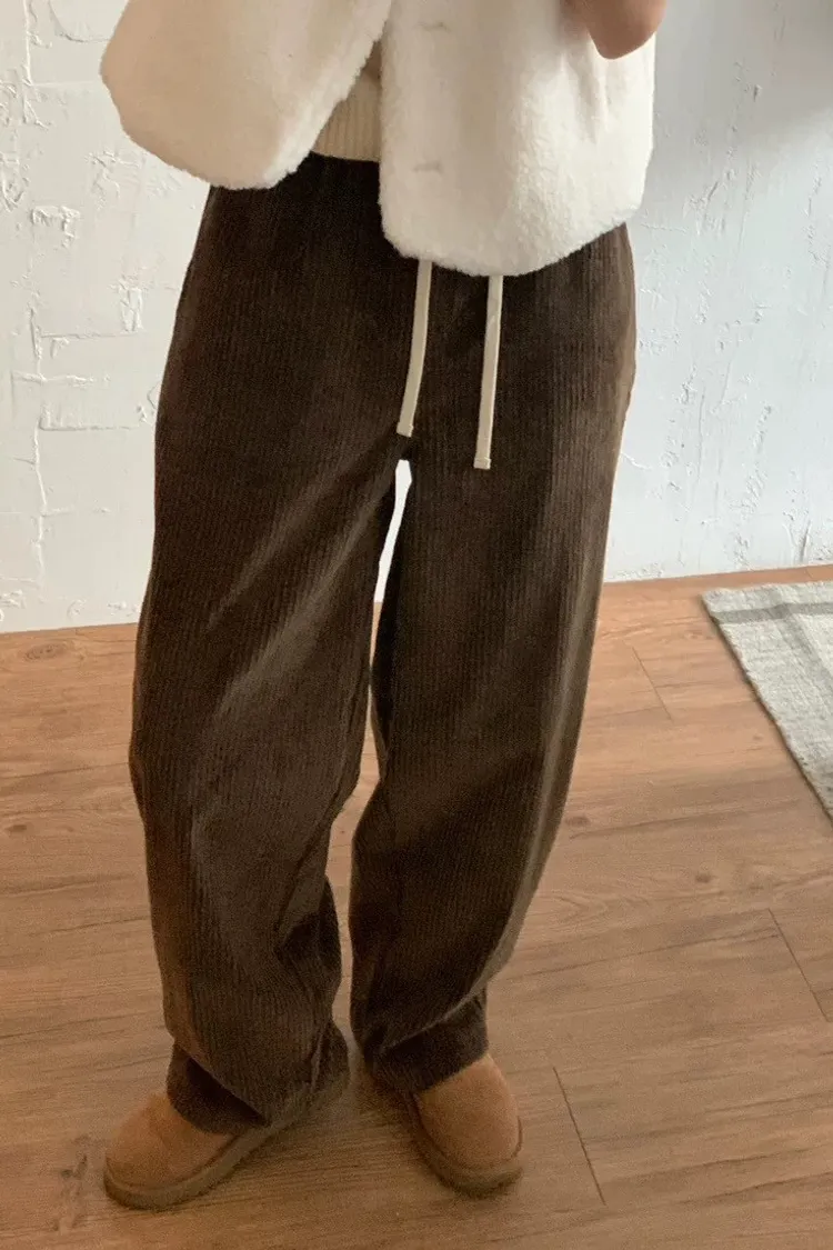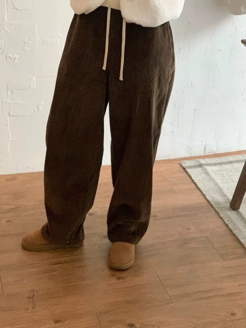 鬆緊坑條抽繩褲