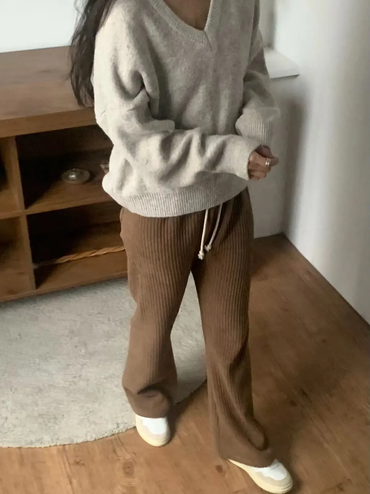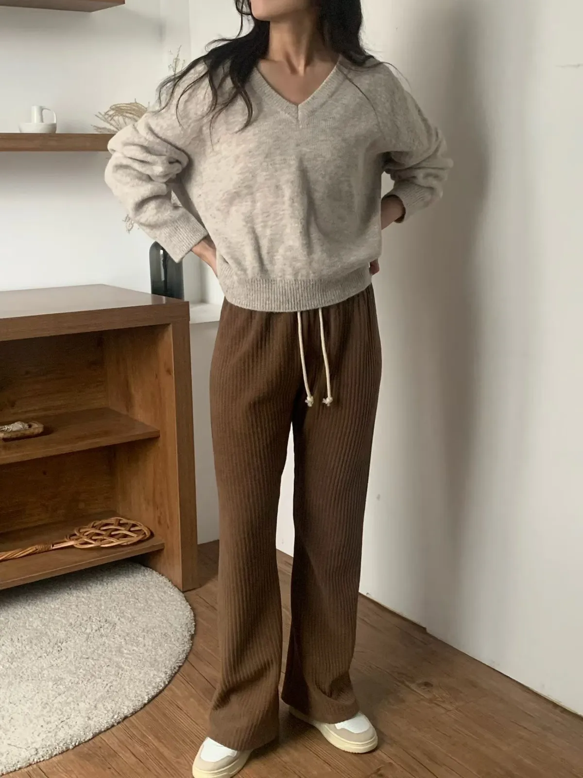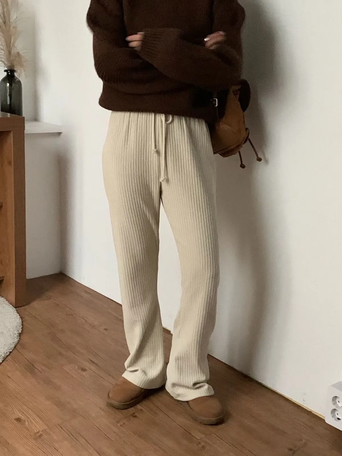 微喇叭鬆緊坑條長褲