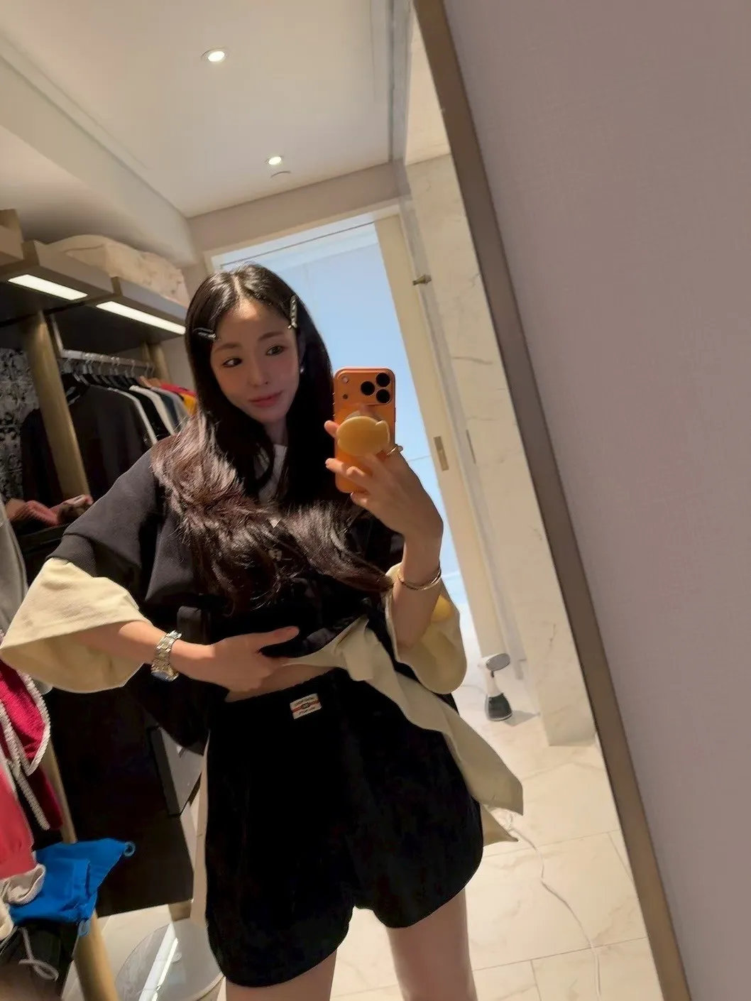 鬆緊絲絨短褲