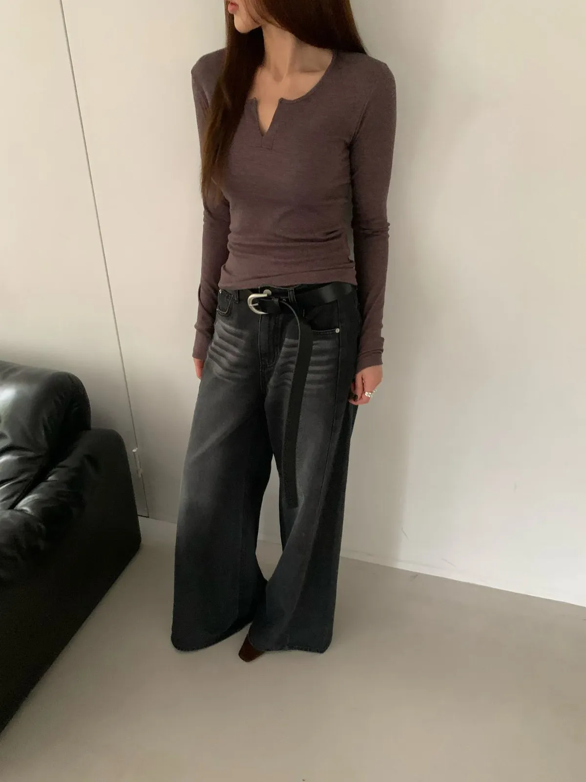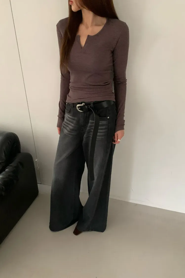 刷色牛仔寬褲