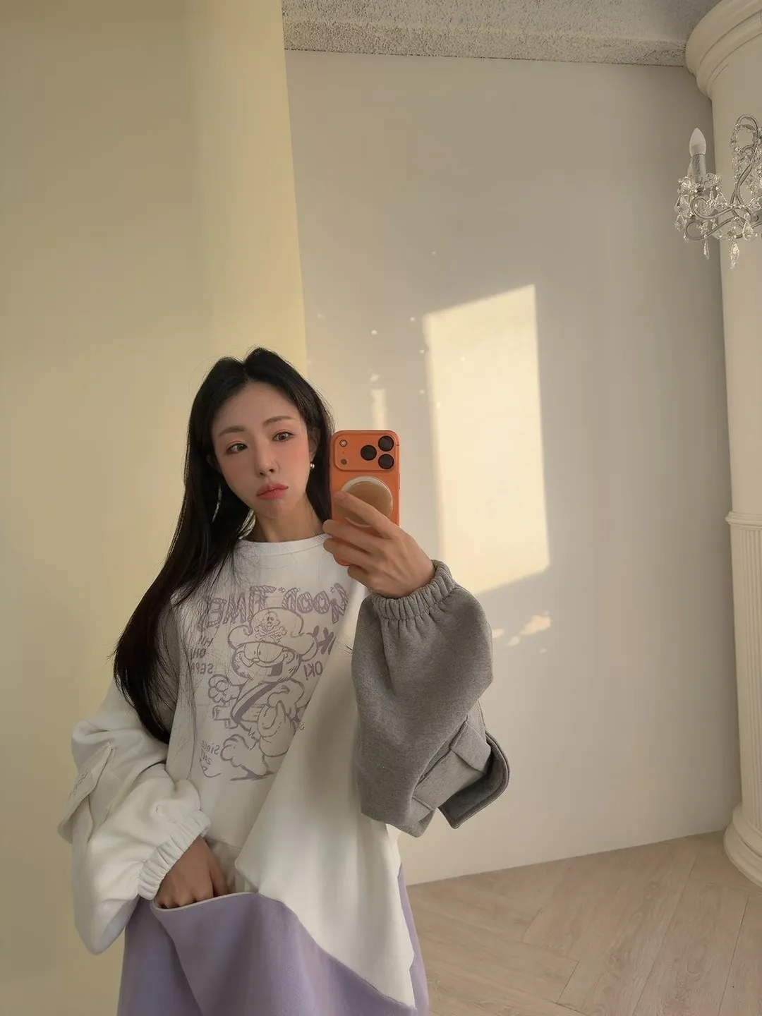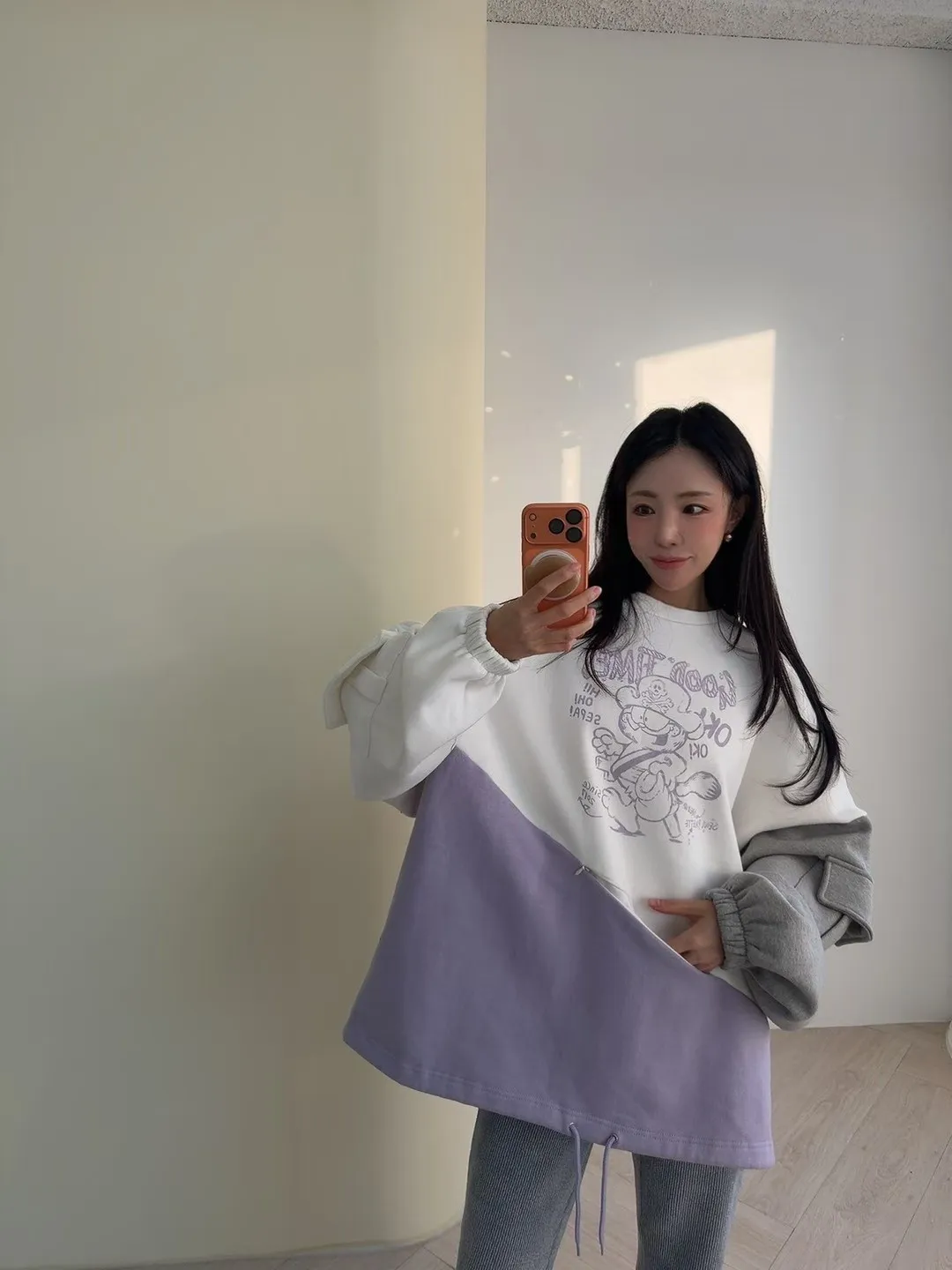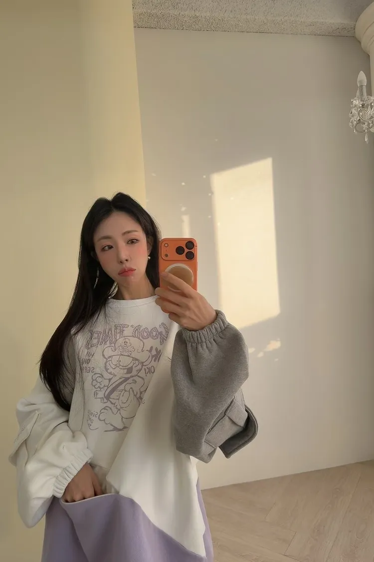 加菲貓配色圓領內刷毛衛衣