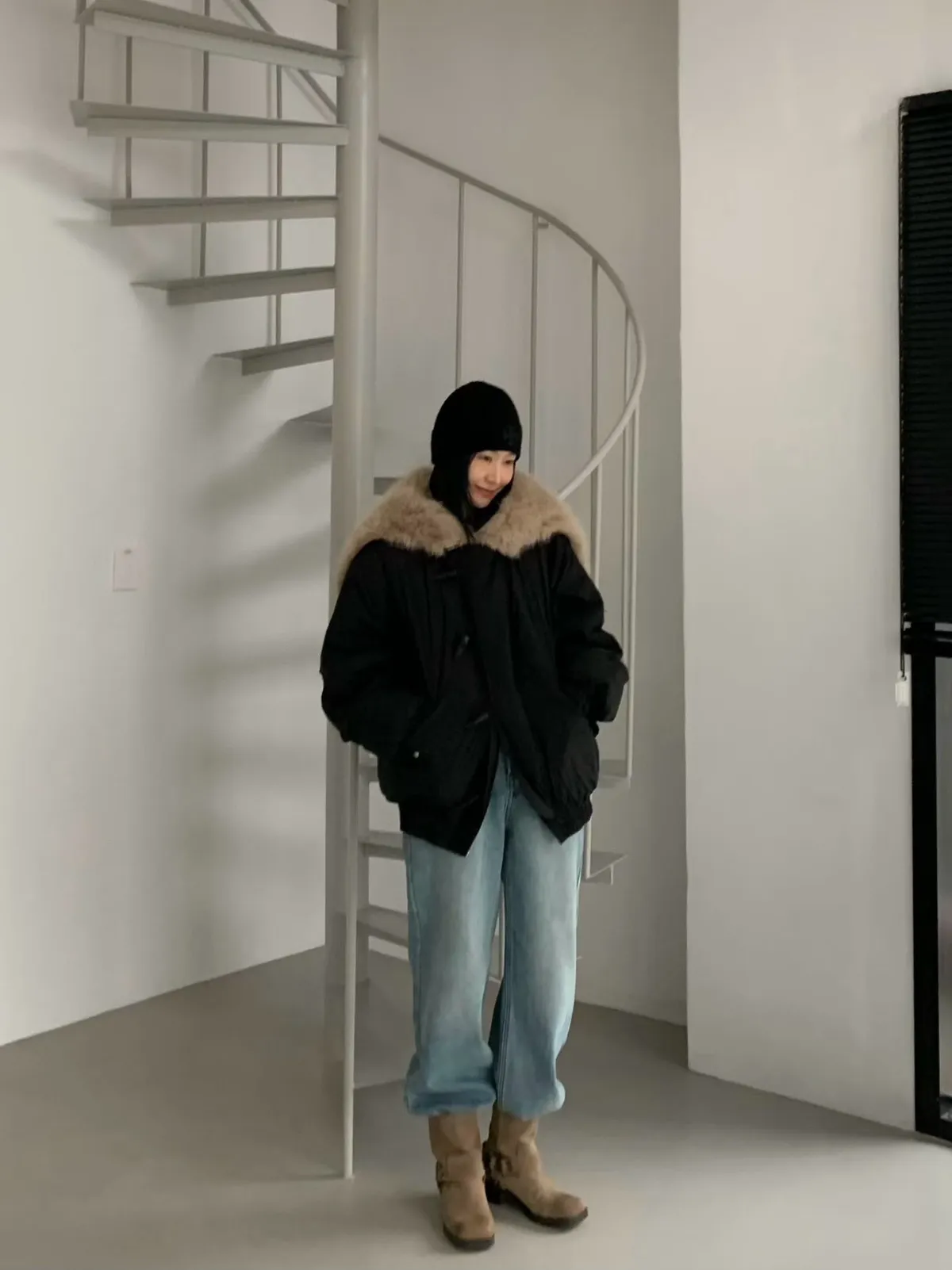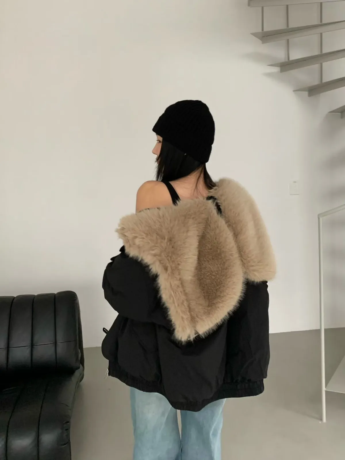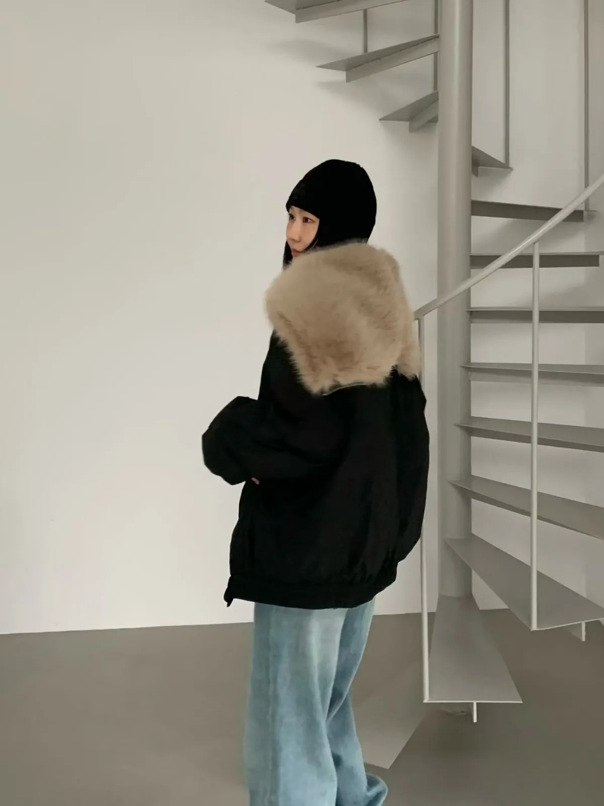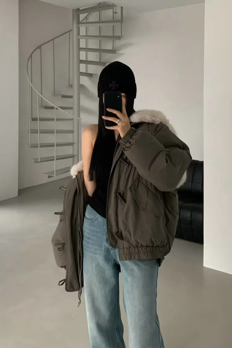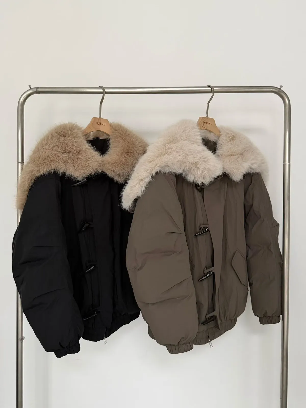 牛角釦毛毛帽鴨絨外套
