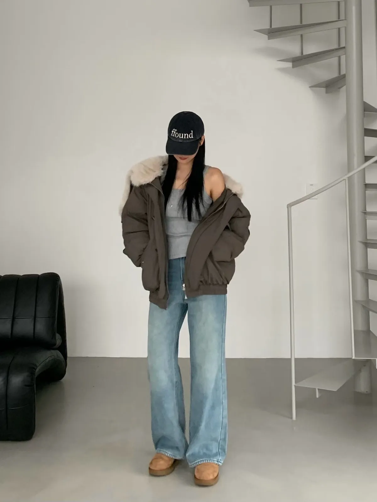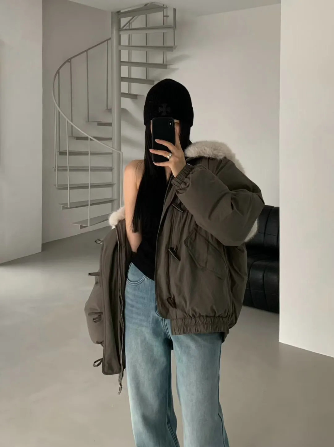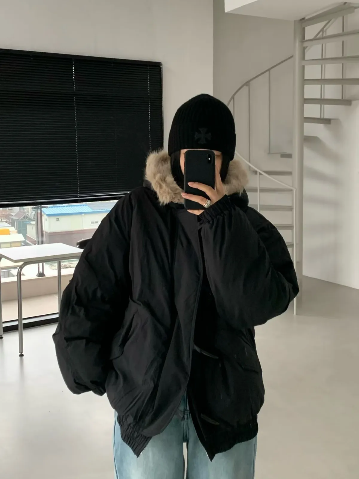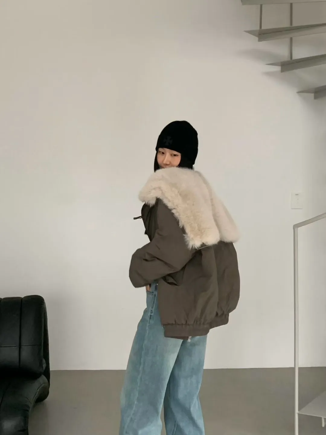 牛角釦毛毛帽鴨絨外套