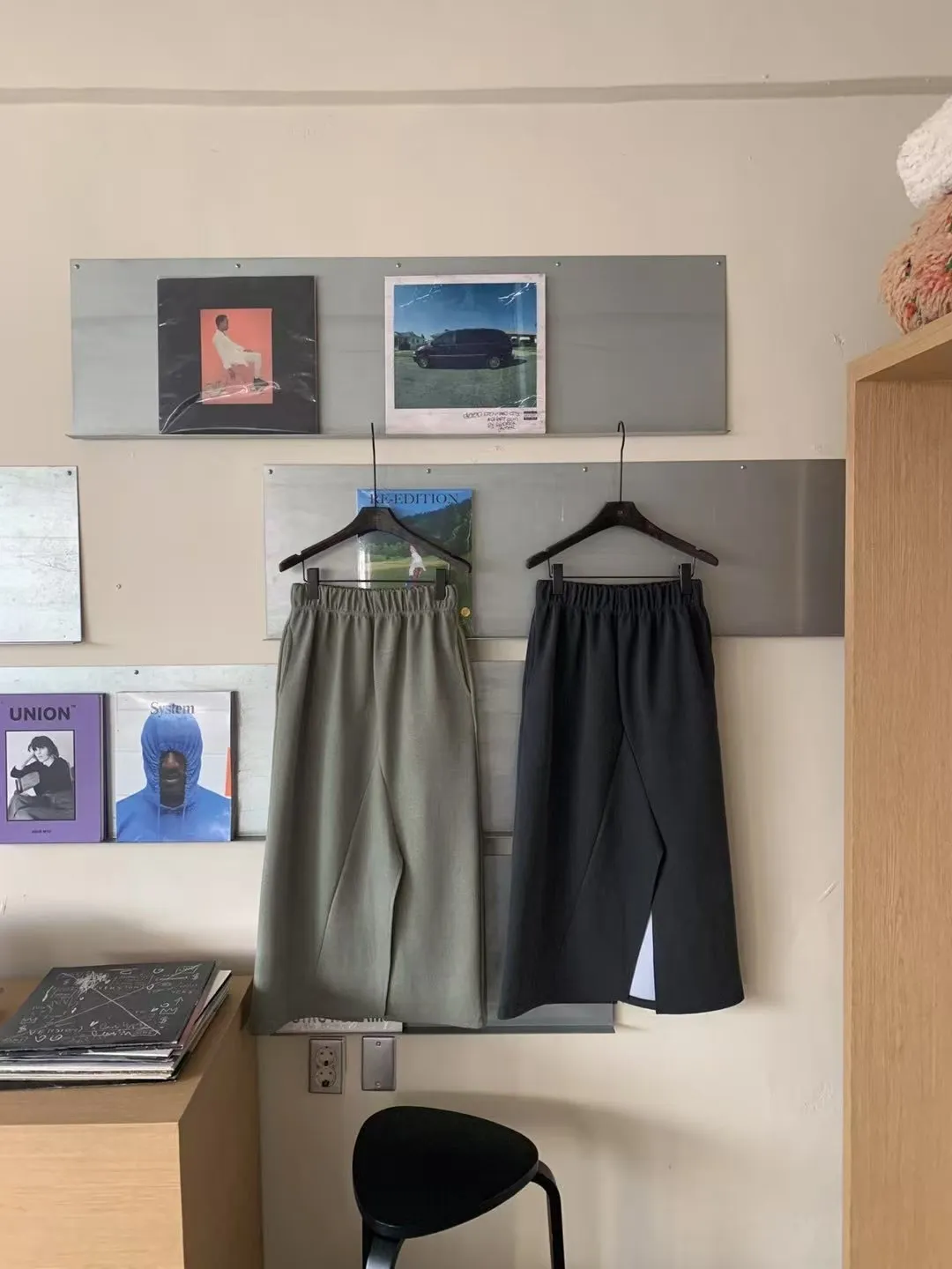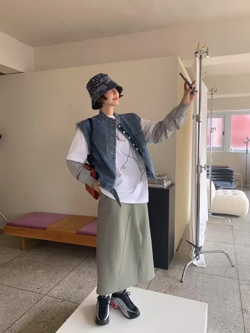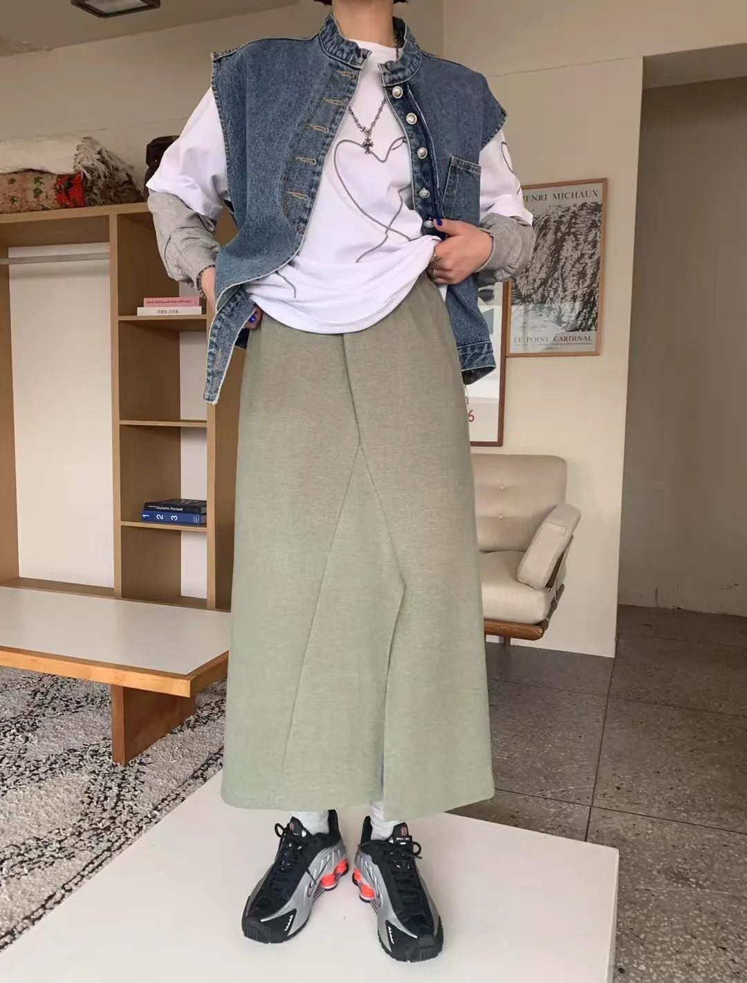 (現貨綠)鬆緊太空棉下開叉長裙