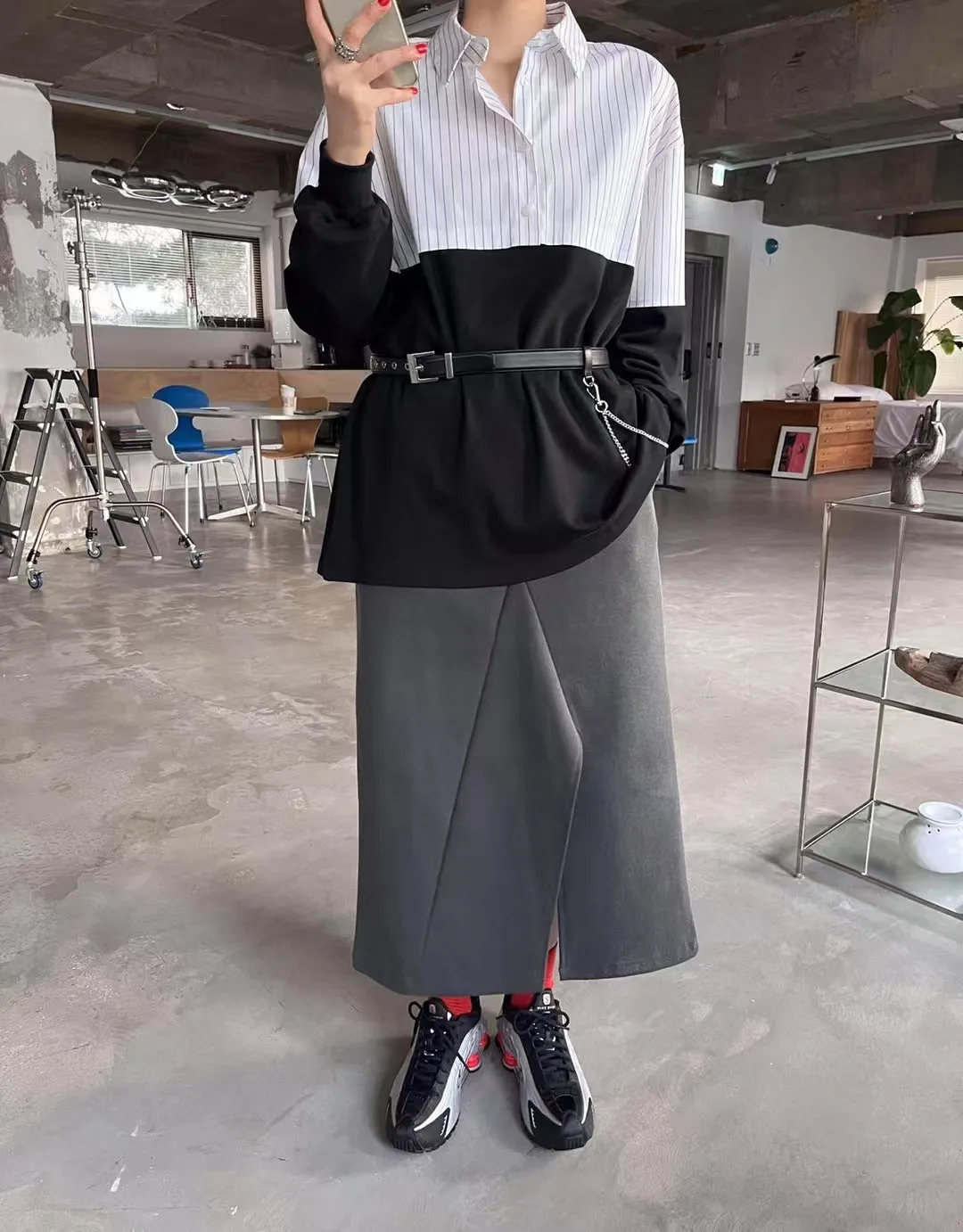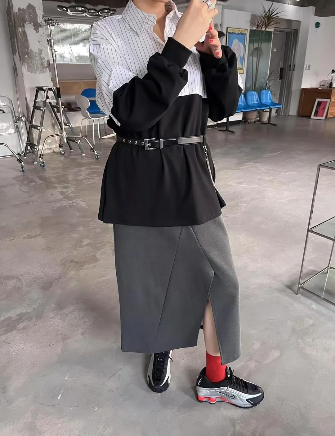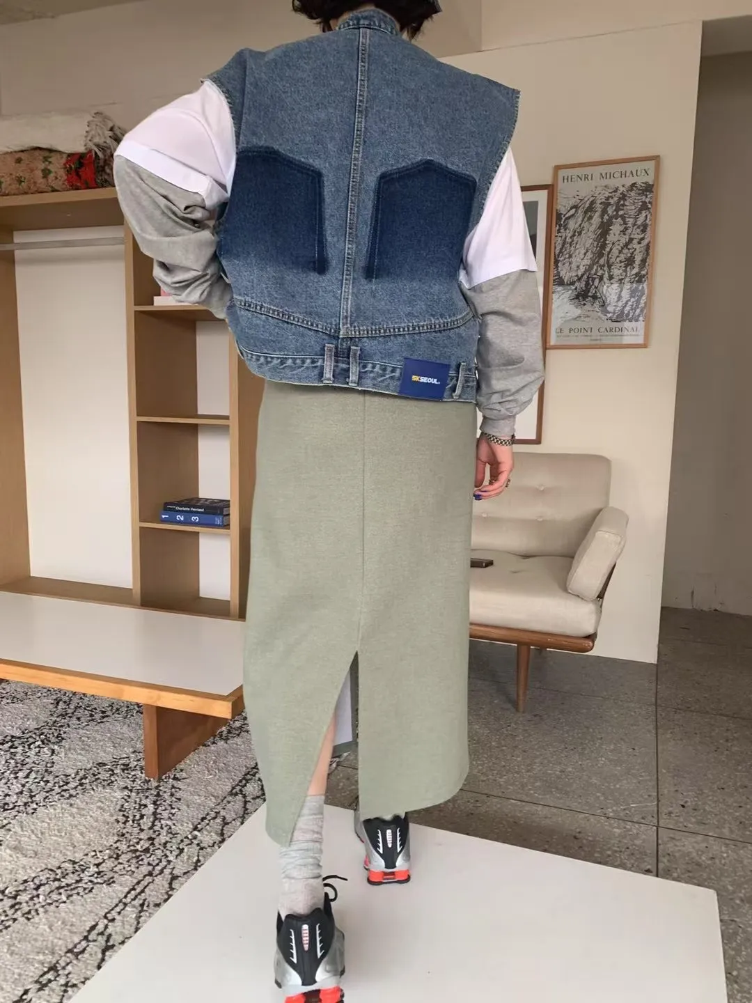 (現貨綠)鬆緊太空棉下開叉長裙